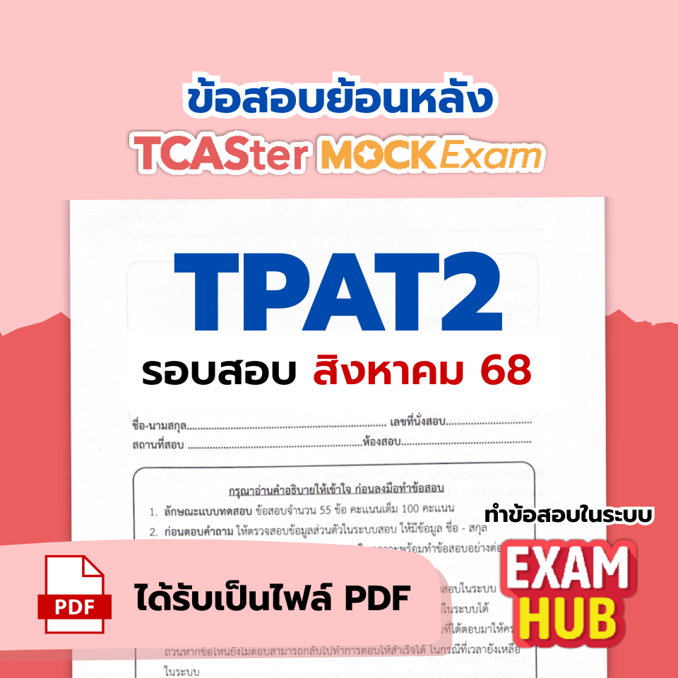 ชุดข้อสอบเสมือนจริงระดับคุณภาพจากสนามสอบ TCASter Mock Exam รอบ ส.ค. 68 วิชา TPAT2 ความถนัดทางศิลปกรรมศาสตร์ ที่นำมาจัดทำในรูปแบบไฟล์ดิจิทัล สำหรับน้อง...